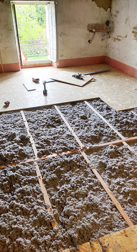 Les travaux de rénovation comprennent l'isolation, la peinture, et les sols.